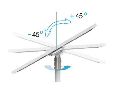 2. Adjust the angle between generating surface of solar panels and sunlight according to the installation environment, the maximum adjustable angle is +/-45degree. Pic