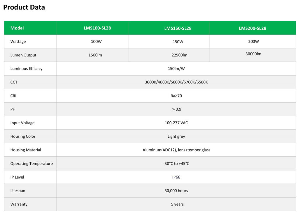 Light efficiency: 150lm/W