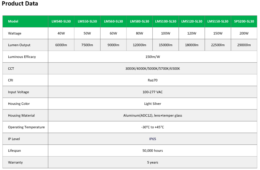 Power watts: 40W, 50W, 60W, 80W, 100W, 120W, 150W, 200W