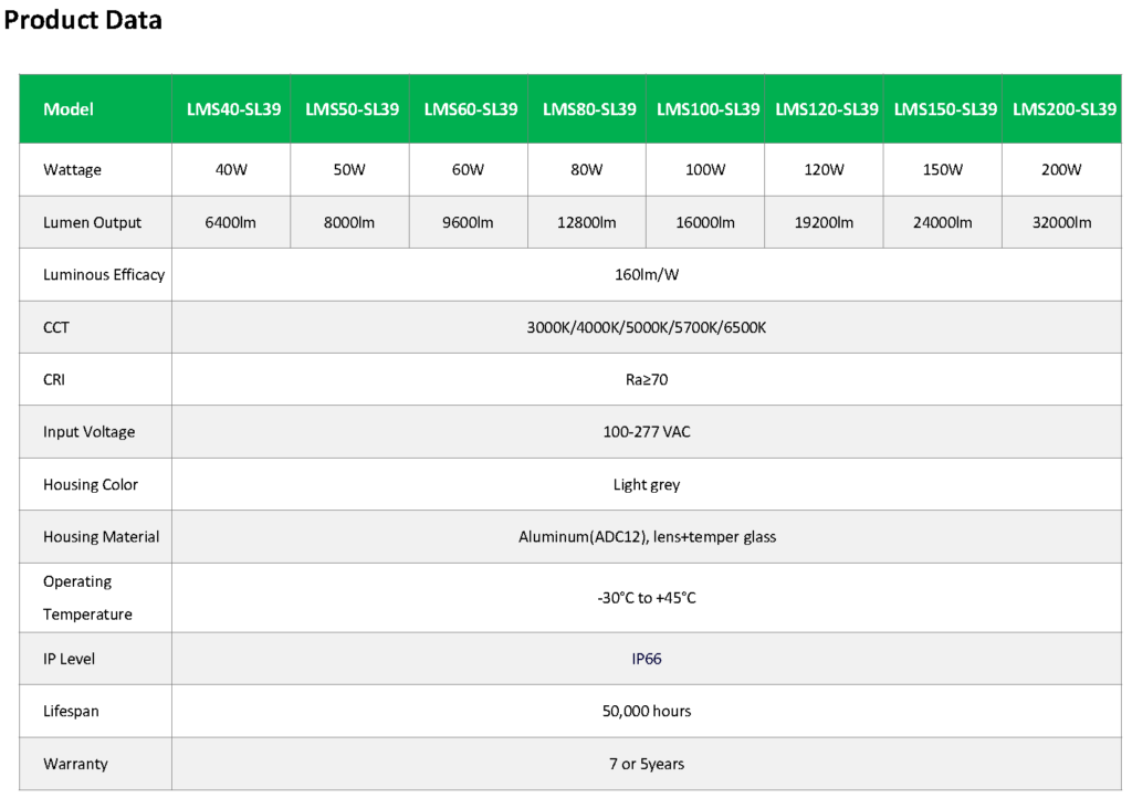 Power watts: 40W, 50W, 60W, 80W, 100W, 120W, 150W, 200W